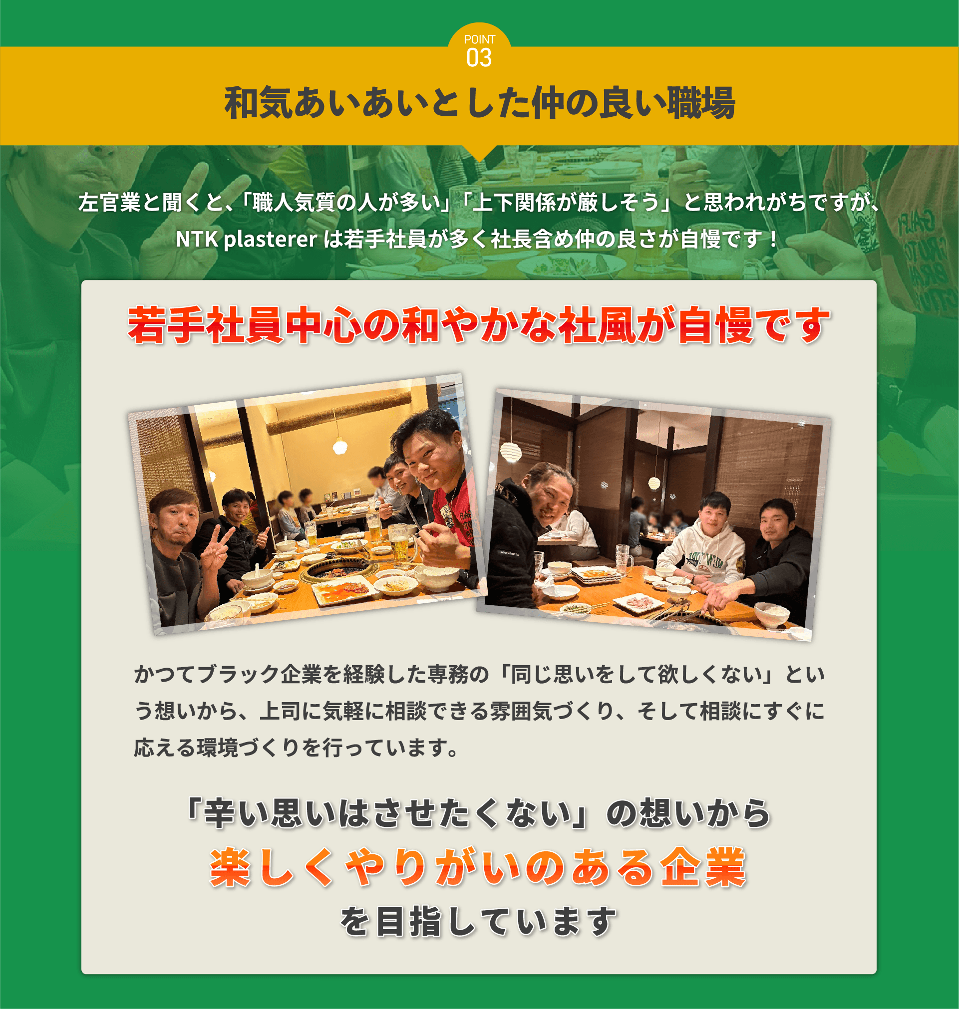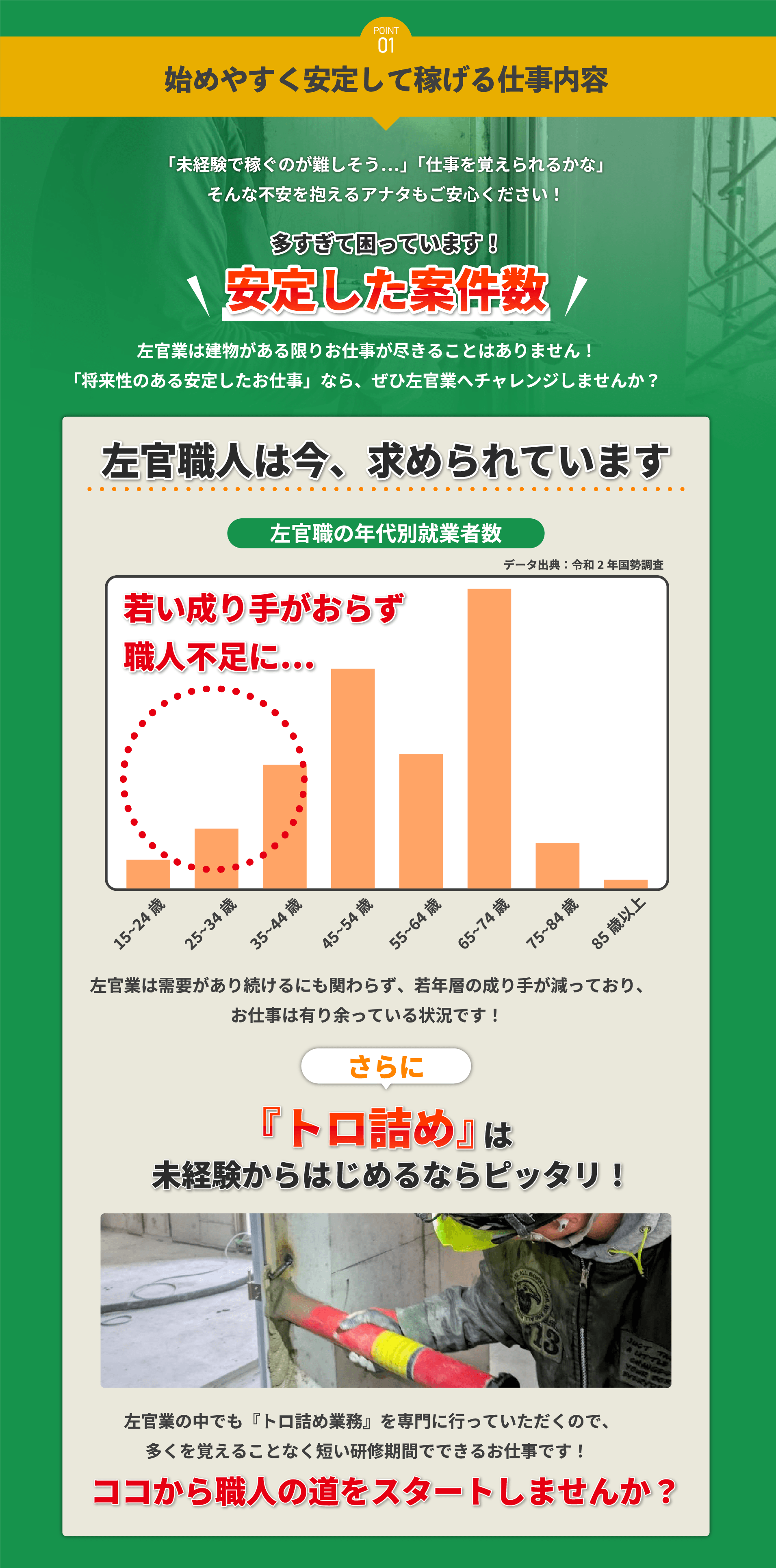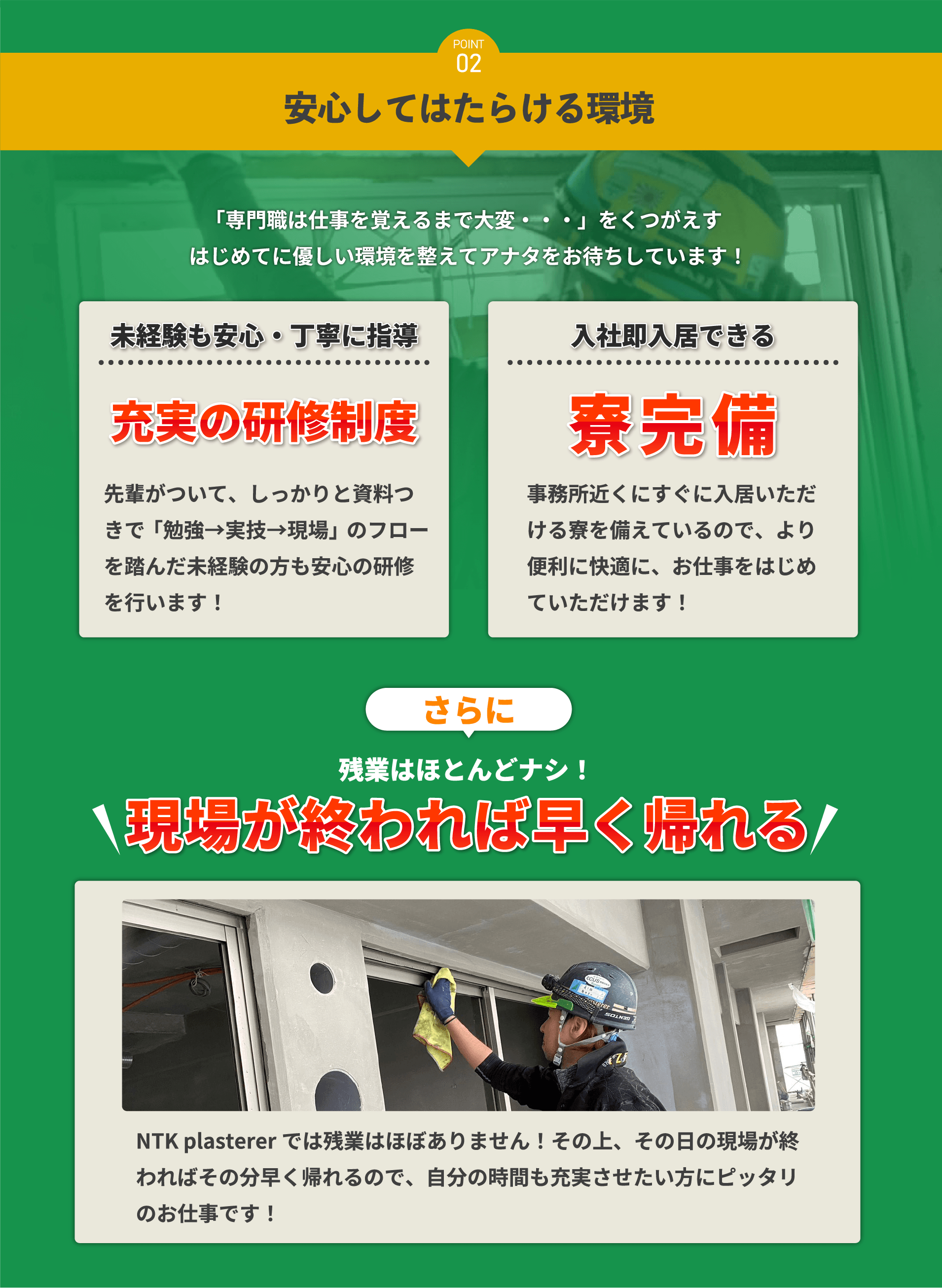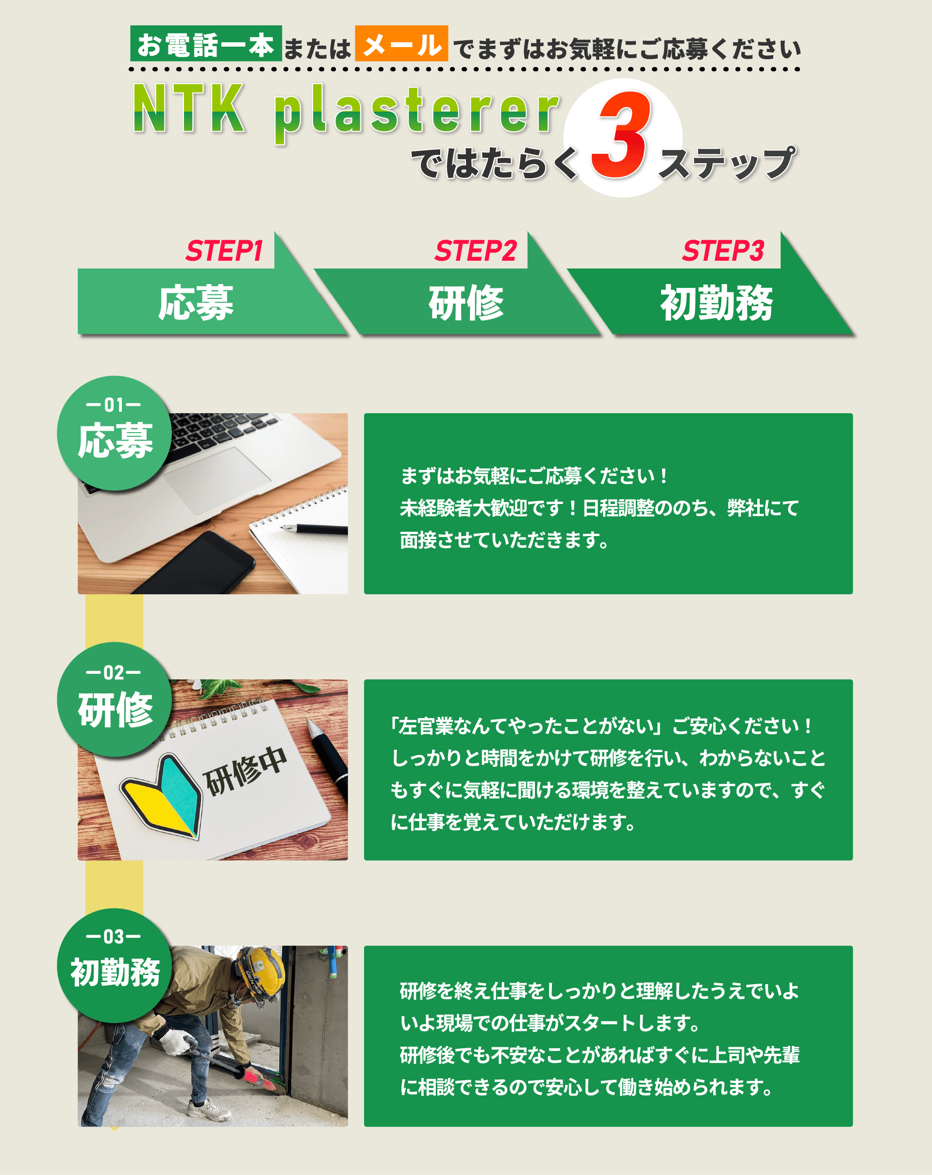 | 応募資格 | 未経験OK 左官業経験者大歓迎 |